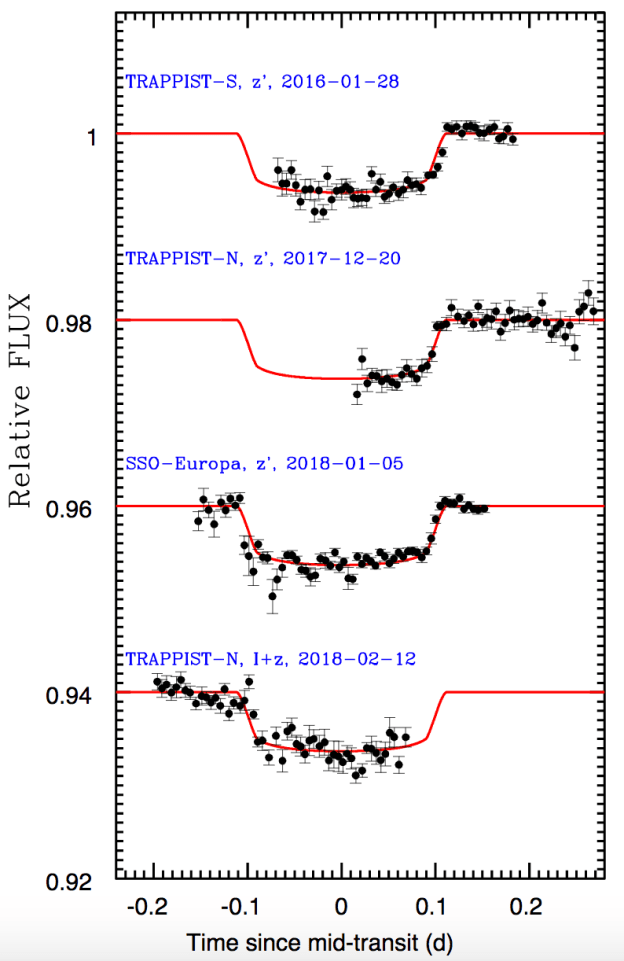 TESS will typically observe each region of sky for 30 days. This means that it will detect planets that don’t take long to orbit their stars and so will produce several transits while TESS is looking at them. Planets with short orbits are located close to their stars, meaning that most planets TESS finds will be too hot for liquid water. But planets orbiting dimmer, cooler red dwarf stars might be at the right temperature for life even if they are so close. The dwarf star TRAPPIST-1 is 1,000 times dimmer than our sun, and is known to host seven closely orbiting planets.
