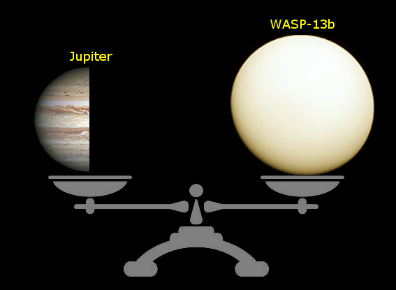 WASP-13b is only half the mass of Jupiter, which means that WASP-13b is much less dense. Like many hot-Jupiter planets it has a bloated radius caused by it being hotter than Jupiter inside.