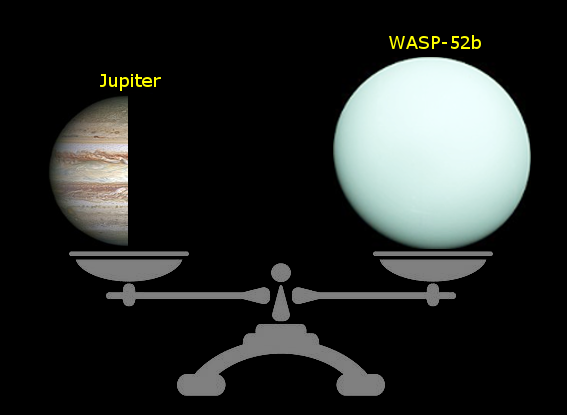 WASP-52b is about half the mass of Jupiter, which means that WASP-52b is much less dense. It is bloated planet, puffed up because it is hotter inside.