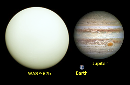 The planet WASP-62b is 1.39 times the radius of Jupiter, the largest planet in our Solar System. That means it has a radius about 14 times that of Earth.