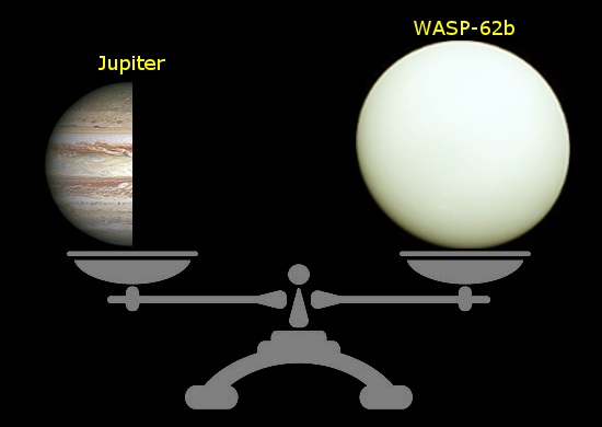WASP-62b is roughly half the mass of Jupiter and so, given its bloated radius, it has a much lower density.