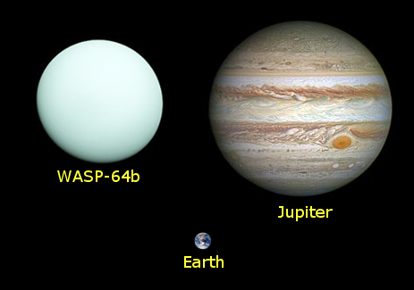 The planet WASP-64b is 1.3 times the radius of Jupiter, the largest planet in our Solar System. It it thus a gas-giant planet with a radius 13 times bigger than our rocky Earth.