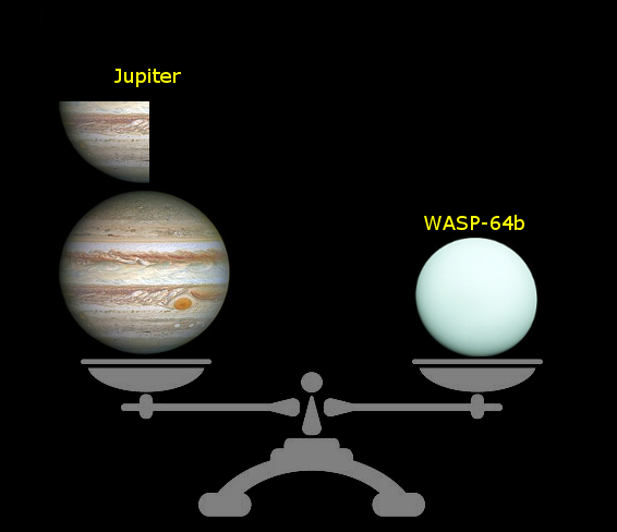 WASP-64b is about 1 and a quarter the mass of Jupiter, which means that it has a similar density to Jupiter.