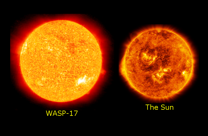 El planeta WASP-17b es uno de los planetas más grandes jamás encontrados, con cerca de dos veces el radio de Júpiter, el planeta más grande de nuestro Sistema Solar. Es un gigante gaseoso vasto e hinchado, 20 veces más grande que la Tierra.