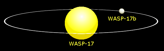 WASP-17b, orbita su estrella a una distancia de 7,7 millones de kilómetros y le toma solamente 3,74 días en completar una vuelta.